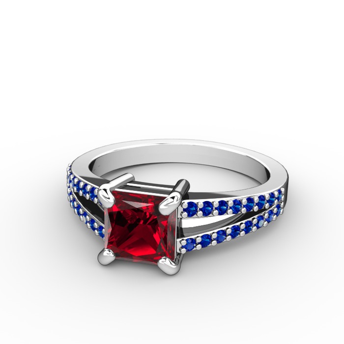 Garnet ve lab safir 8 ayar beyaz altın yüzük