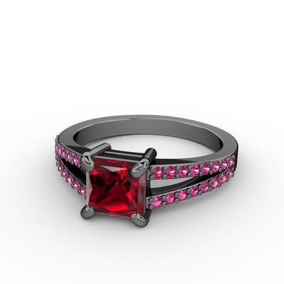 Garnet ve rodolit garnet 925 ayar siyah rodyum kaplama gümüş yüzük