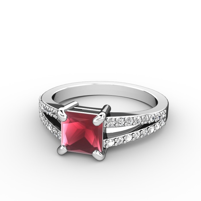 Kök yakut ve beyaz zirkon 14 ayar beyaz altın yüzük