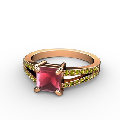 Kök yakut ve peridot 8 ayar rose altın yüzük