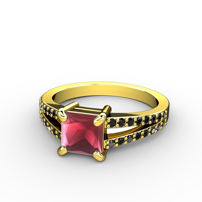 Kök yakut ve siyah zirkon 18 ayar altın yüzük