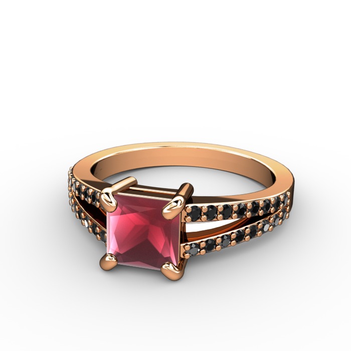 Kök yakut ve siyah zirkon 8 ayar rose altın yüzük
