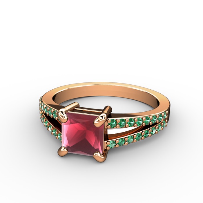 Kök yakut ve yeşil kuvars 925 ayar rose altın kaplama gümüş yüzük