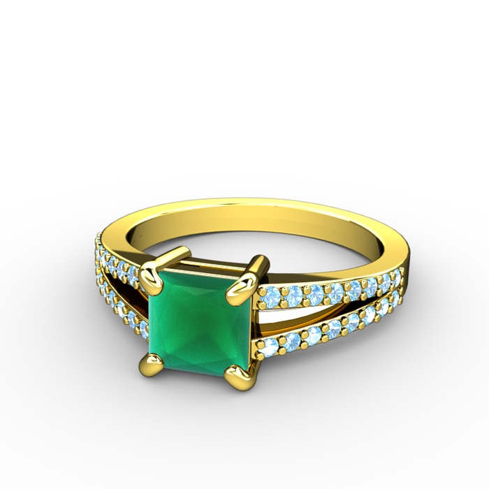 Kök zümrüt ve akuamarin 925 ayar altın kaplama gümüş yüzük