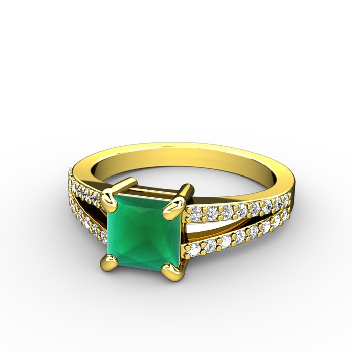 Kök zümrüt ve beyaz zirkon 925 ayar altın kaplama gümüş yüzük