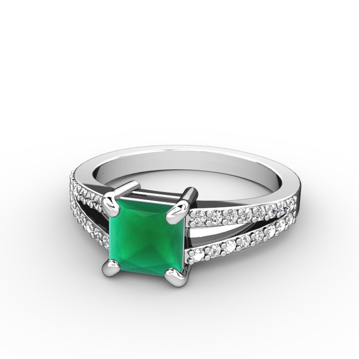 Kök zümrüt ve beyaz zirkon 925 ayar gümüş yüzük