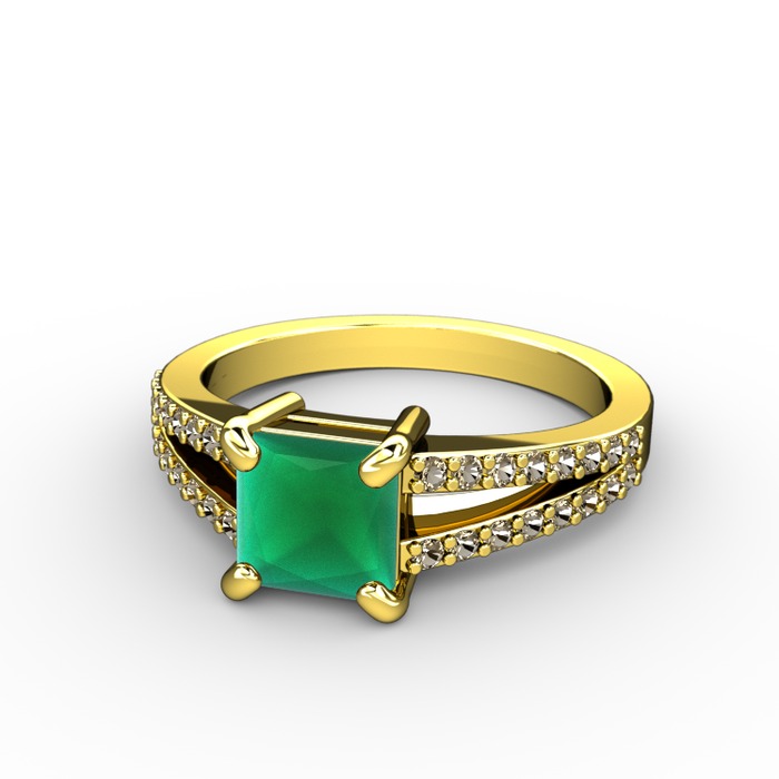 Kök zümrüt ve dumanlı kuvars 8 ayar altın yüzük