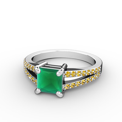 Kök zümrüt ve sitrin 14 ayar beyaz altın yüzük
