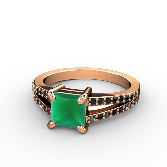 Kök zümrüt ve siyah zirkon 14 ayar rose altın yüzük
