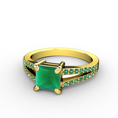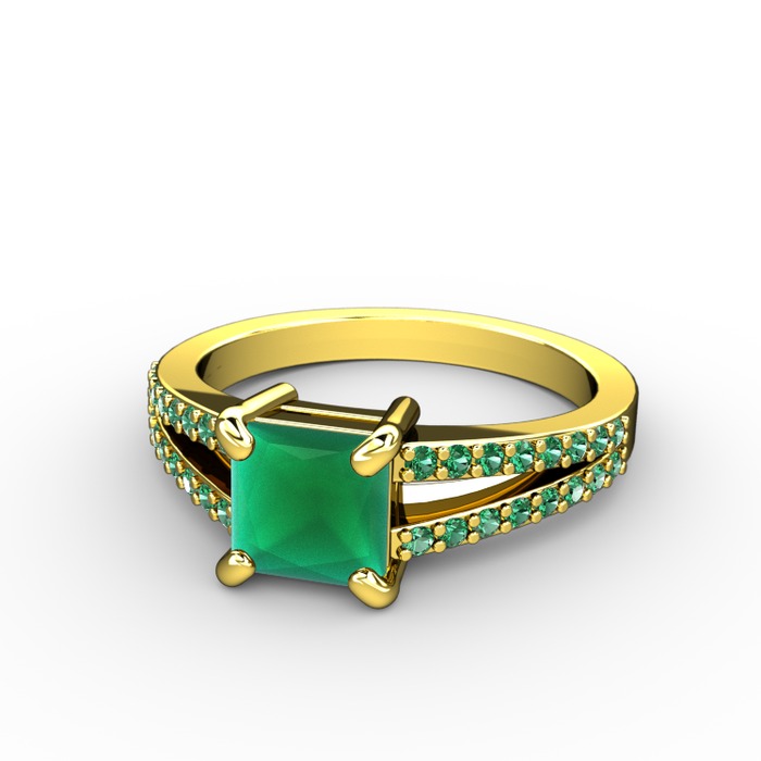 Kök zümrüt ve yeşil kuvars 18 ayar altın yüzük