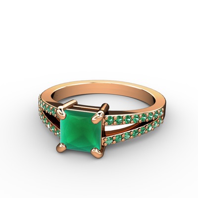 Kök zümrüt ve yeşil kuvars 8 ayar rose altın yüzük