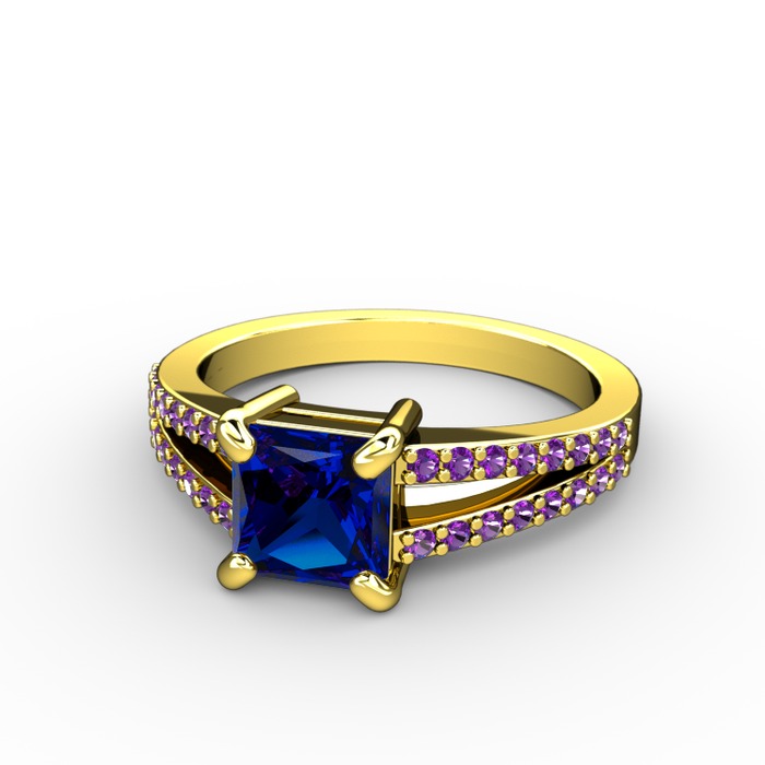 Lab safir ve ametist 925 ayar altın kaplama gümüş yüzük