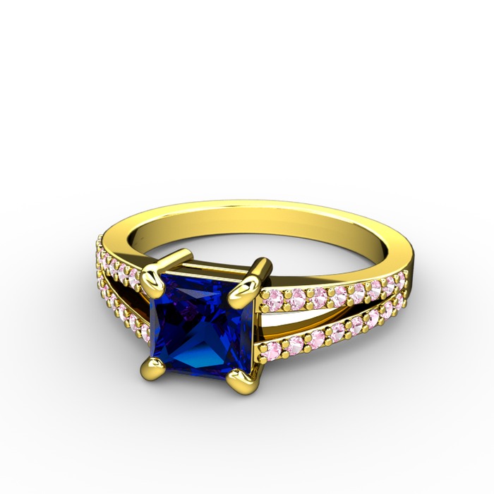 Lab safir ve pembe kuvars 8 ayar altın yüzük