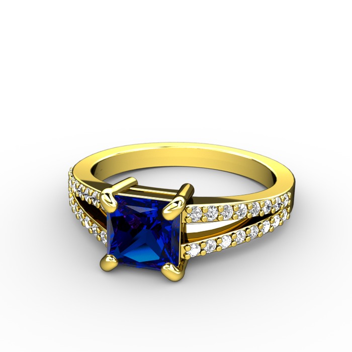 Lab safir ve pırlanta 8 ayar altın yüzük (0.352 karat)