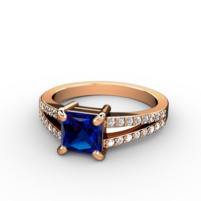 Lab safir ve pırlanta 8 ayar rose altın yüzük (0.352 karat)