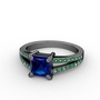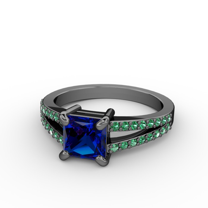 Lab safir ve yeşil kuvars 925 ayar siyah rodyum kaplama gümüş yüzük