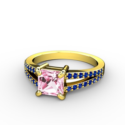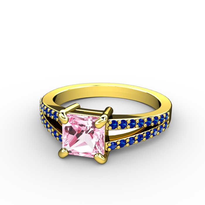 Pembe kuvars ve lab safir 18 ayar altın yüzük