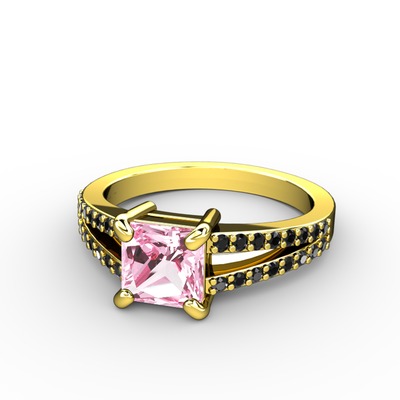 Pembe kuvars ve siyah zirkon 8 ayar altın yüzük