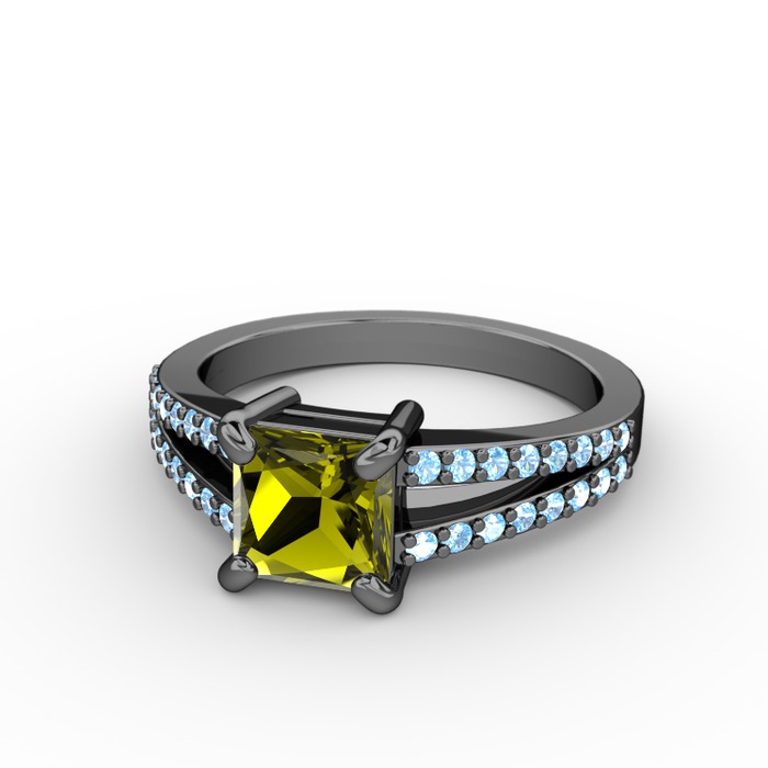 Peridot ve akuamarin 925 ayar siyah rodyum kaplama gümüş yüzük
