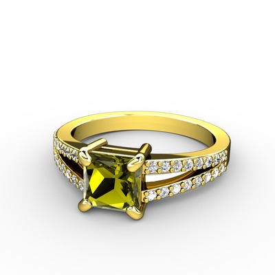 Peridot ve pırlanta 14 ayar altın yüzük (0.352 karat)