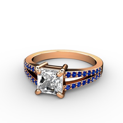 Pırlanta ve lab safir 14 ayar rose altın yüzük (1.24 karat)