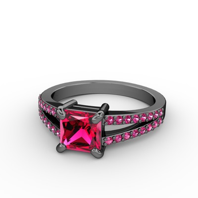 Rodolit garnet 925 ayar siyah rodyum kaplama gümüş yüzük