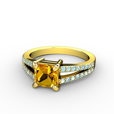 Sitrin ve akuamarin 8 ayar altın yüzük