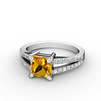 Sitrin ve pırlanta 925 ayar gümüş yüzük (0.352 karat)