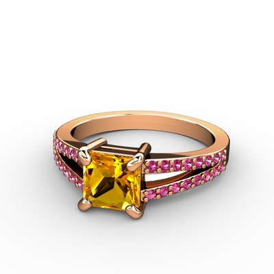 Sitrin ve rodolit garnet 14 ayar rose altın yüzük