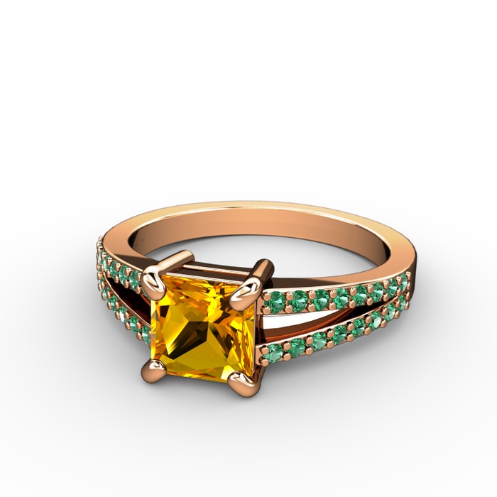 Sitrin ve yeşil kuvars 8 ayar rose altın yüzük