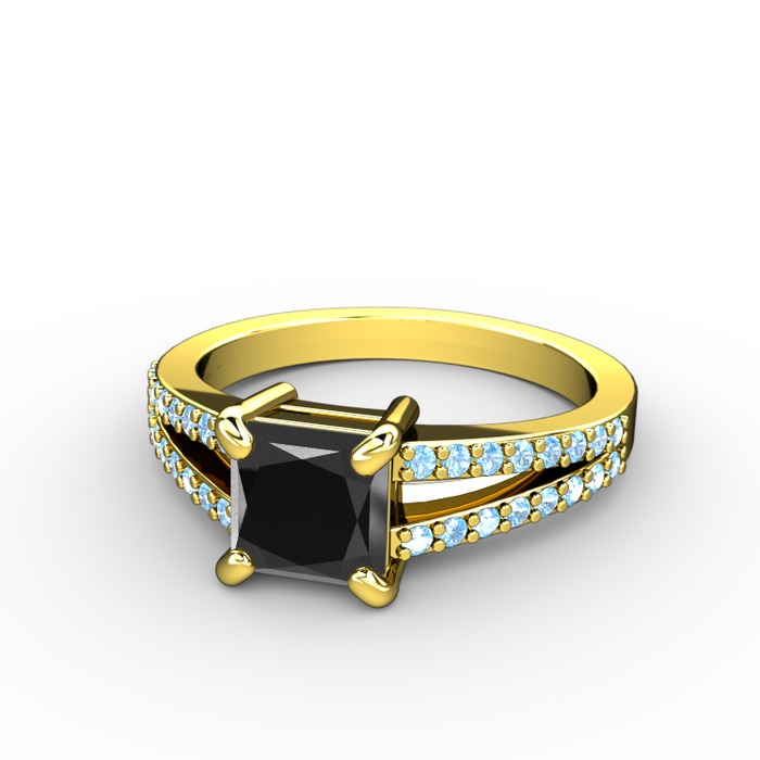 Siyah zirkon ve akuamarin 8 ayar altın yüzük