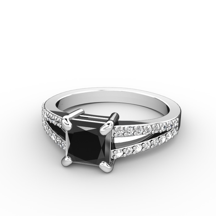 Siyah zirkon ve beyaz zirkon 18 ayar beyaz altın yüzük