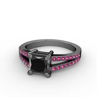 Siyah zirkon ve rodolit garnet 925 ayar siyah rodyum kaplama gümüş yüzük