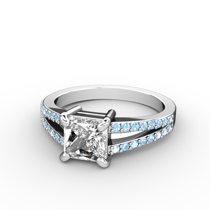 Swarovski ve akuamarin 8 ayar beyaz altın yüzük