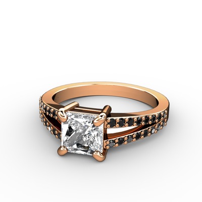 Swarovski ve siyah zirkon 14 ayar rose altın yüzük