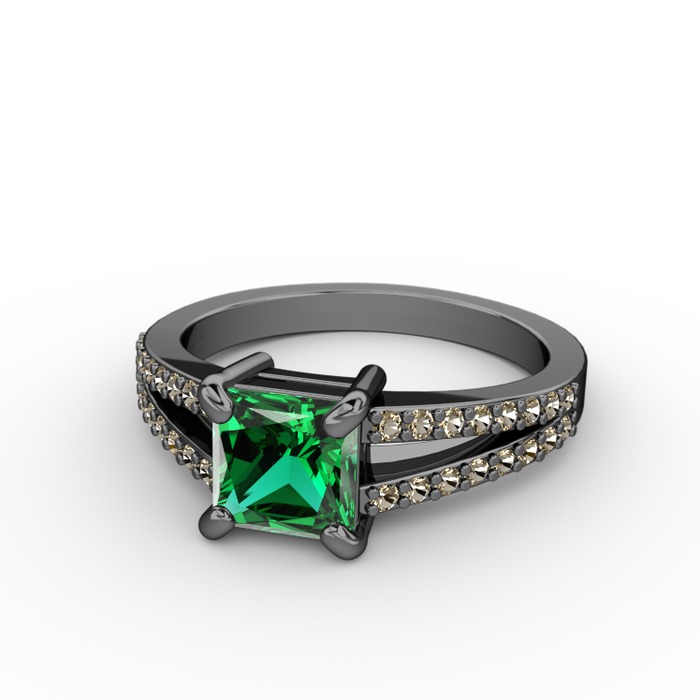 Yeşil kuvars ve dumanlı kuvars 925 ayar siyah rodyum kaplama gümüş yüzük