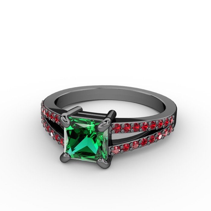 Yeşil kuvars ve garnet 925 ayar siyah rodyum kaplama gümüş yüzük