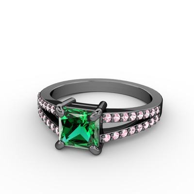 Yeşil kuvars ve pembe kuvars 925 ayar siyah rodyum kaplama gümüş yüzük