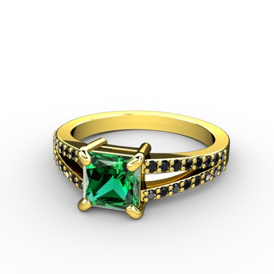 Yeşil kuvars ve siyah zirkon 18 ayar altın yüzük