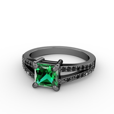 Yeşil kuvars ve siyah zirkon 925 ayar siyah rodyum kaplama gümüş yüzük