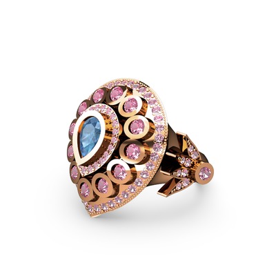 Akuamarin ve pembe kuvars 18 ayar rose altın yüzük