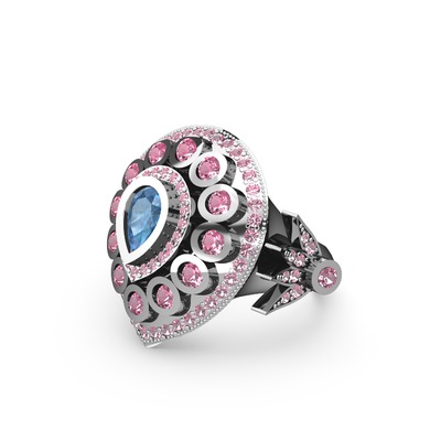 Akuamarin ve pembe kuvars 925 ayar gümüş yüzük