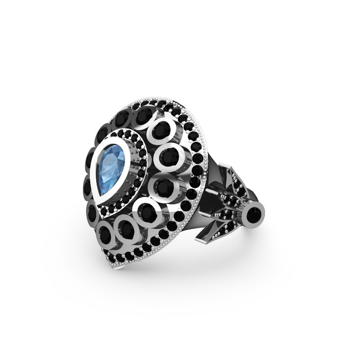 Akuamarin ve siyah zirkon 14 ayar beyaz altın yüzük