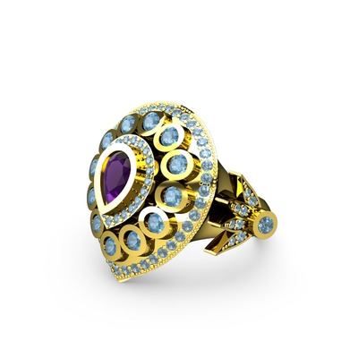 Ametist ve akuamarin 8 ayar altın yüzük