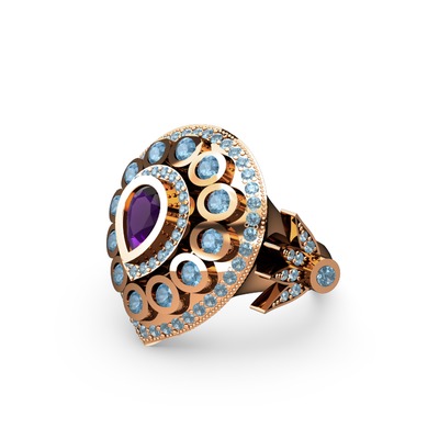 Ametist ve akuamarin 8 ayar rose altın yüzük