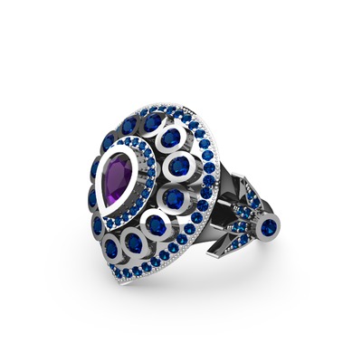 Ametist ve lab safir 14 ayar beyaz altın yüzük