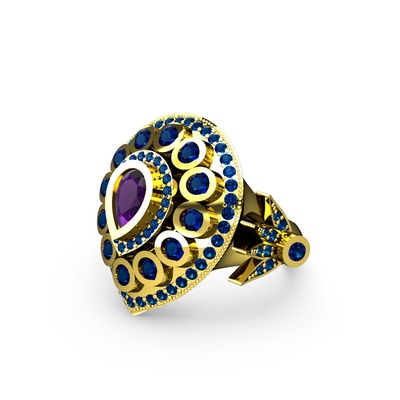 Ametist ve lab safir 925 ayar altın kaplama gümüş yüzük