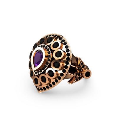 Ametist ve siyah zirkon 8 ayar rose altın yüzük