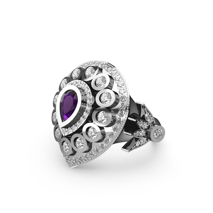 Ametist ve swarovski 8 ayar beyaz altın yüzük