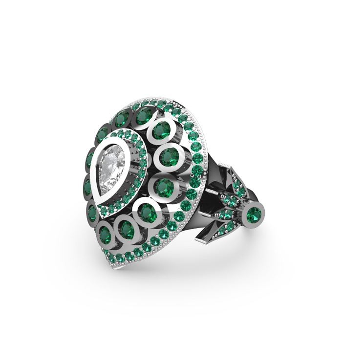 Beyaz zirkon ve yeşil kuvars 14 ayar beyaz altın yüzük